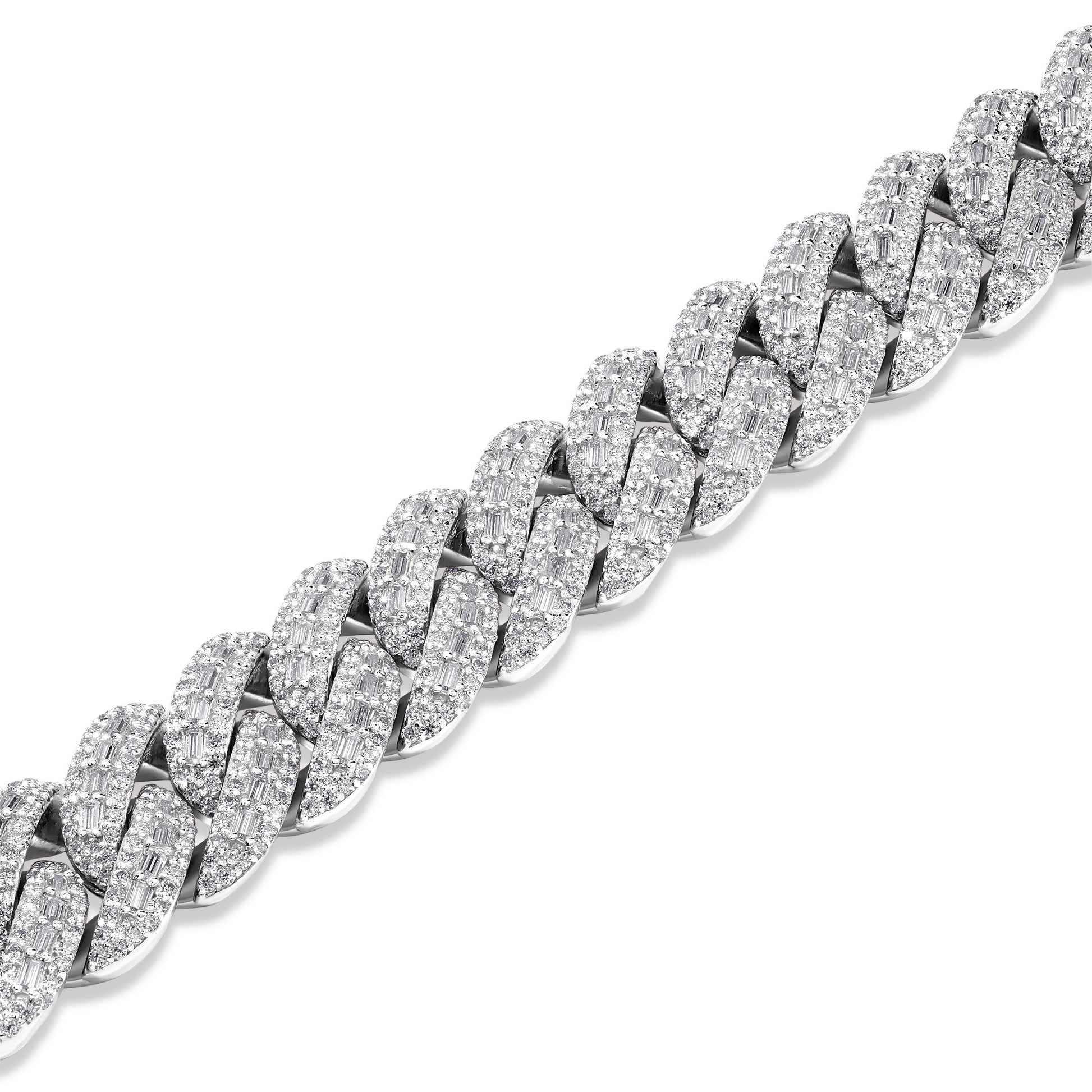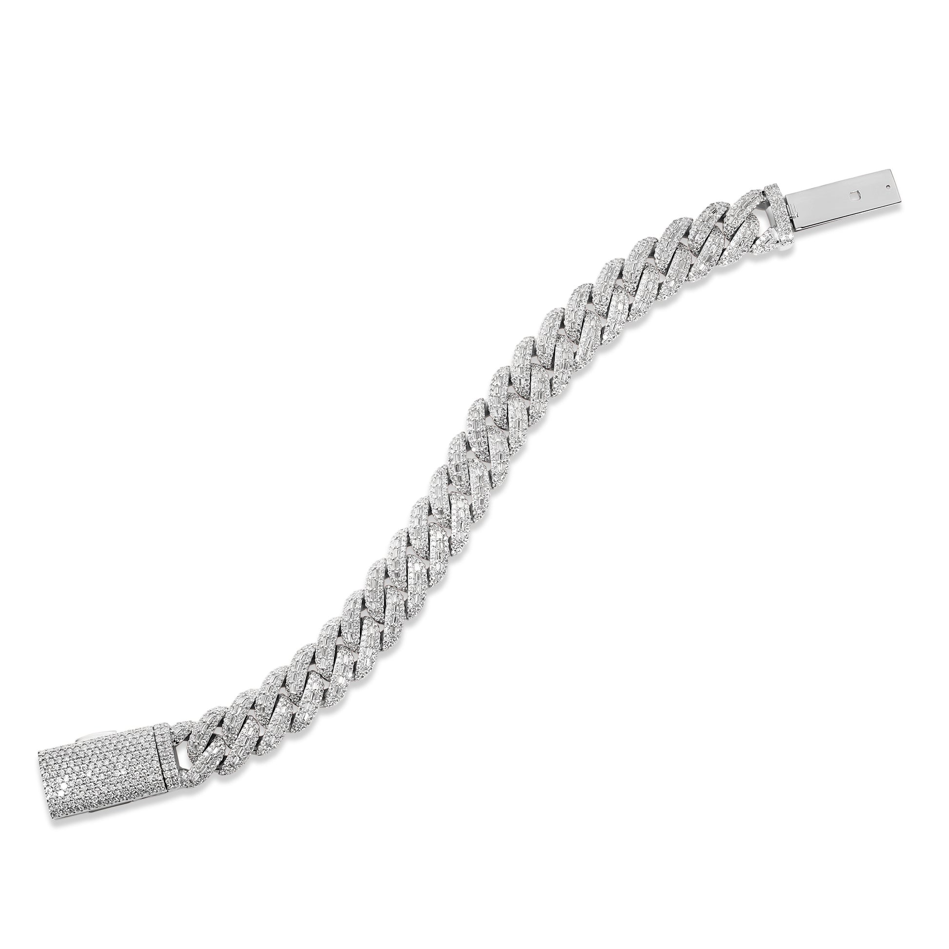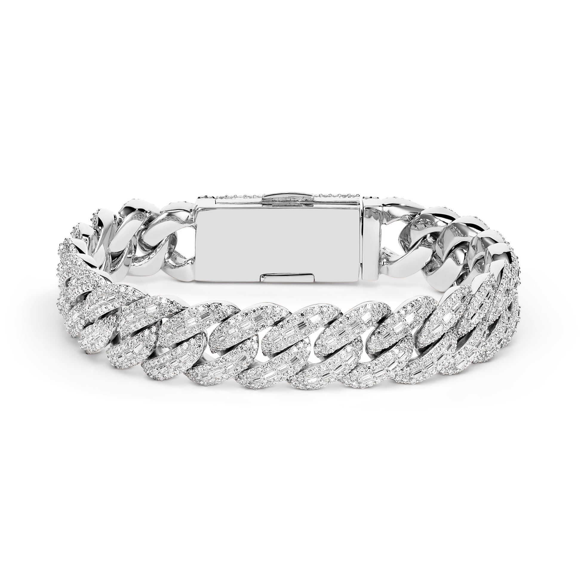 Step up your game with the ultimate statement piece, designed to outshine the rest. TTB Jewelry’s 14mm Baguette Moissanite Cuban Bracelet is crafted from pure 925 Silver and finished in Premium Rhodium, 18k Yellow Gold, or 18k Rose Gold built to endure and keep its radiant shine. Unlike competitors, our bracelets are iced out with VVS1 D color Moissanite stones that pass the diamond tester, guaranteeing brilliance that rivals natural diamonds and a quality you can feel.