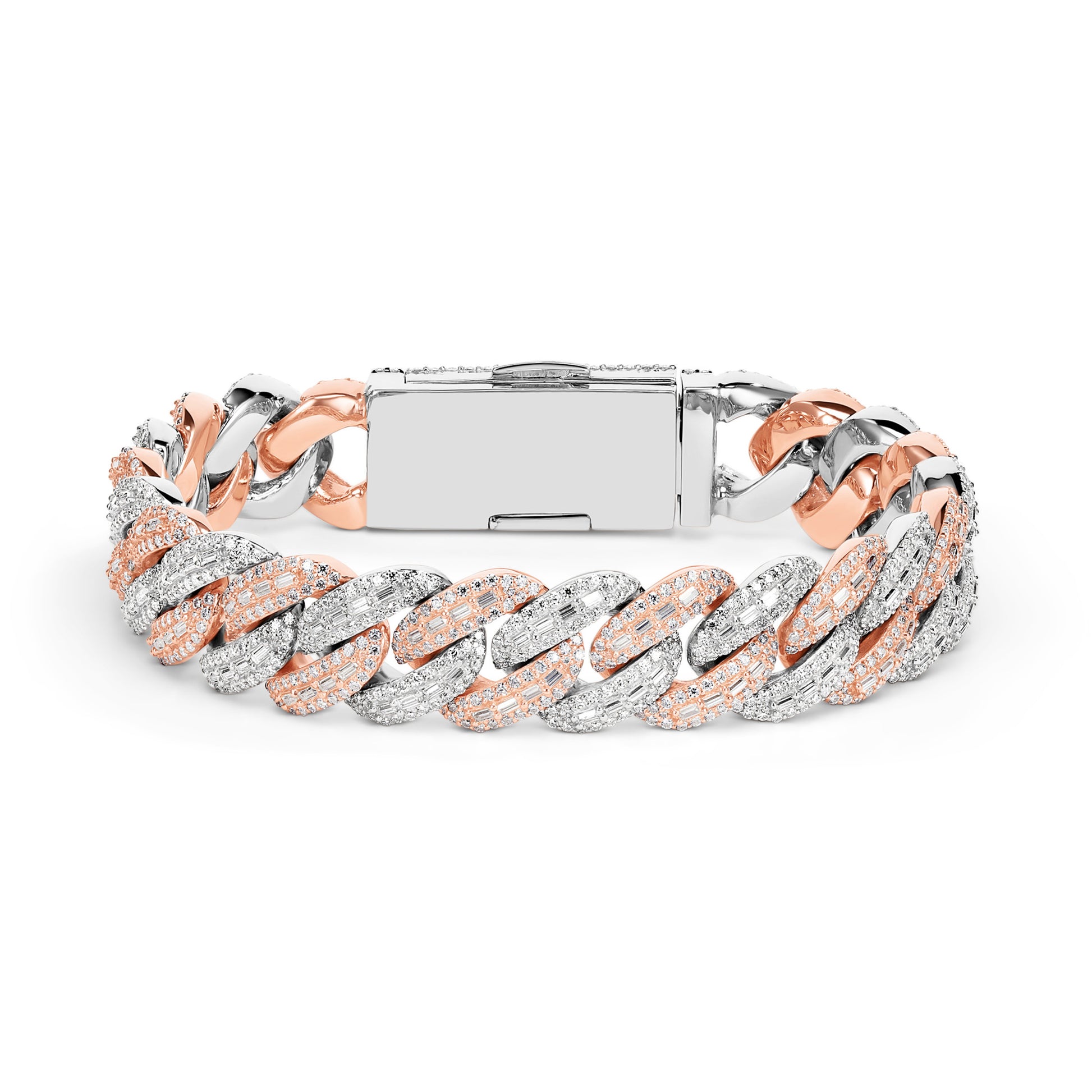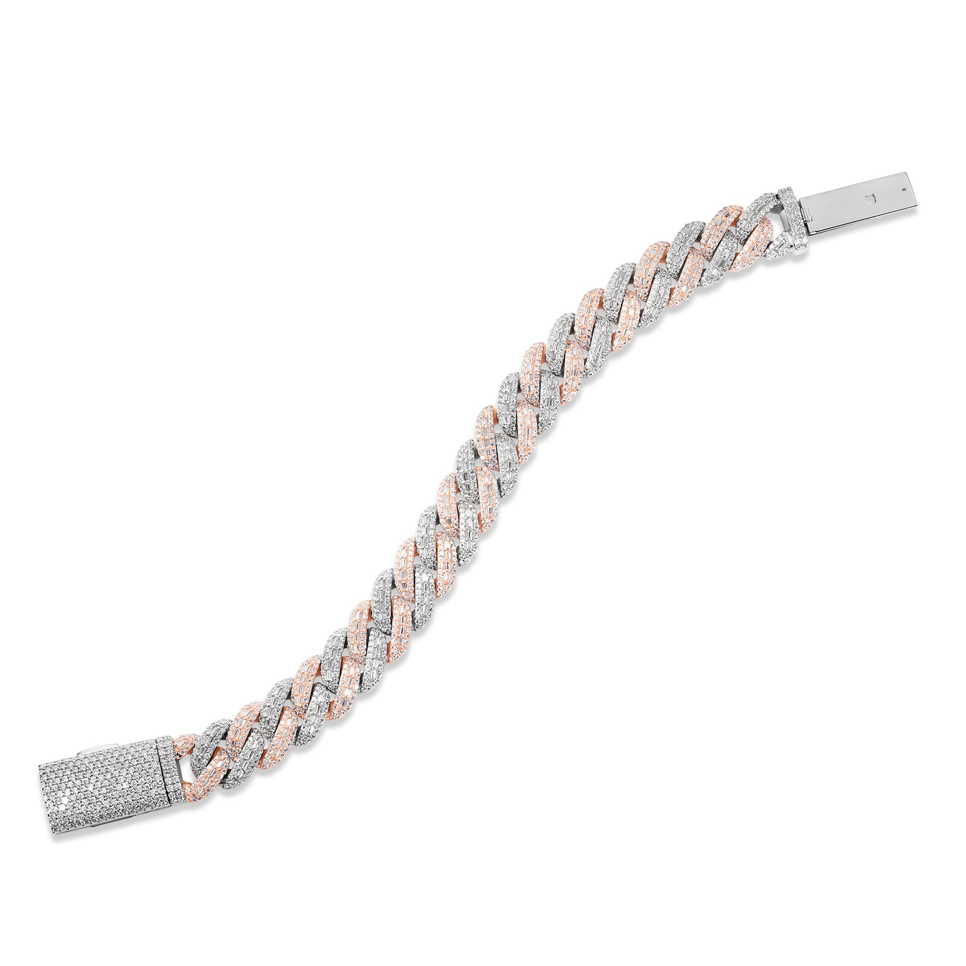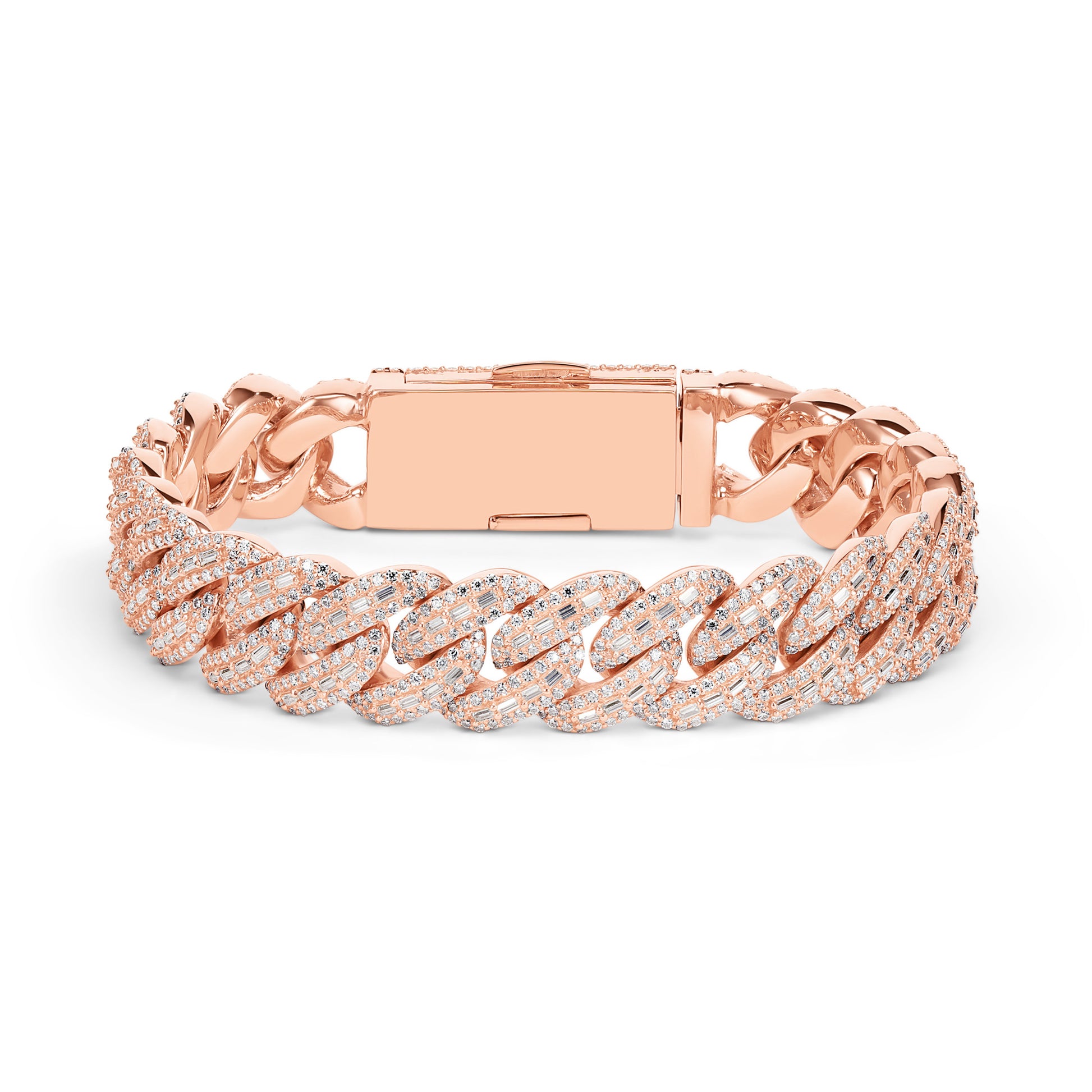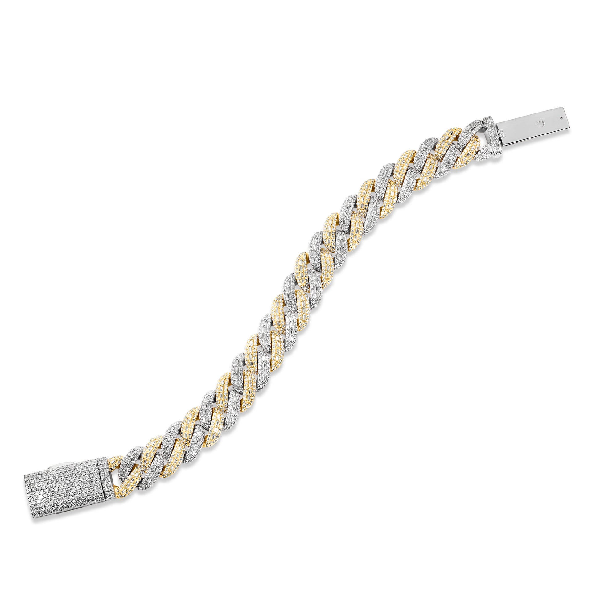 Step up your game with the ultimate statement piece, designed to outshine the rest. TTB Jewelry’s 14mm Baguette Moissanite Cuban Bracelet is crafted from pure 925 Silver and finished in Premium Rhodium, 18k Yellow Gold, or 18k Rose Gold built to endure and keep its radiant shine. Unlike competitors, our bracelets are iced out with VVS1 D color Moissanite stones that pass the diamond tester, guaranteeing brilliance that rivals natural diamonds and a quality you can feel.