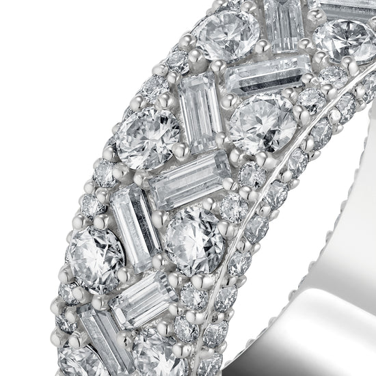 Step up your game with the ultimate statement piece, designed to outshine the rest. TTB Jewelry’s Crosshatch Baguette and Round Set Moissanite Ring is crafted from pure 925 Silver and finished in Premium Rhodium, 18k Yellow Gold, or 18k Rose Gold built to endure and keep its radiant shine. Unlike competitors, our rings are iced out with VVS1 D color Moissanite stones that pass the diamond tester, guaranteeing brilliance that rivals natural diamonds and a quality you can feel.