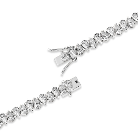 Step up your game with the ultimate statement piece, designed to outshine the rest. TTB Jewelry’s Pear Shaped Moissanite Tennis Bracelet is crafted from pure 925 Silver and finished in Premium Rhodium, 18k Yellow Gold, or 18k Rose Gold built to endure and keep its radiant shine. Unlike competitors, our bracelets are iced out with VVS1 D color Moissanite stones that pass the diamond tester, guaranteeing brilliance that rivals natural diamonds and a quality you can feel.